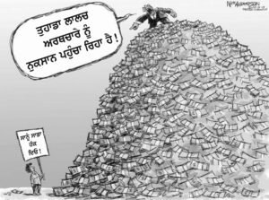 ਫਿਰ ਮੁਫ਼ਤਖੋਰੀ ਕੌਣ ਕਰ ਰਿਹਾ ਹੈ? ਵੱਡੀਆਂ-ਵੱਡੀਆਂ ਕੰਪਨੀਆਂ ਨੂੰ ਨਾ ਸਿਰਫ਼ ਟੈਕਸਾਂ ਤੋਂ ਛੋਟ ਮਿਲ਼ਦੀ ਹੈ, ਸਗੋਂ ਮੁਫ਼ਤ ਬਿਜਲੀ ਮਿਲ਼ਦੀ ਹੈ, ਮੁਫ਼ਤ ਪਾਣੀ ਮਿਲ਼ਦਾ ਹੈ, ਕੌਡੀਆਂ ਦੇ ਭਾਅ ਜ਼ਮੀਨ ਦਿੱਤੀ ਜਾਂਦੀ ਹੈ। ਘਾਟਾ ਪੈਣ ‘ਤੇ ਇਹਨਾਂ ਕੰਪਨੀਆਂ ਨੂੰ ਬਚਾਉਣ ਲਈ ਅੱਡੀ-ਚੋਟੀ ਦਾ ਜ਼ੋਰ ਲਾਇਆ ਜਾਂਦਾ ਹੈ। ਇਹਨਾਂ ਵੱਡੀਆਂ ਕੰਪਨੀਆਂ ਨੂੰ ਬੇਹੱਦ ਘੱਟ ਵਿਆਜ਼ ‘ਤੇ ਕਰਜ਼ੇ ਦਿੱਤੇ ਜਾਂਦੇ ਹਨ ਜਿਨ੍ਹਾਂ ਨੂੰ ਨਾ ਚੁਕਾਉਣ ‘ਤੇ ਐੱਨਪੀਏ ਆਖ ਕੇ ਲੀਕ ਮਾਰ ਦਿੱਤੀ ਜਾਂਦੀ ਹੈ! ਇਹੋ ਇਸ ਦੇਸ਼ ਦੇ ਅਸਲੀ ਮੁਫ਼ਤਖੋਰ ਹਨ ਜੋ ਇਸ ਦੇਸ਼ ਦੇ ਸੰਸਾਧਨਾਂ ਤੋਂ ਲੈ ਕੇ ਕਿਰਤ ਦੀ ਖੁੱਲ੍ਹੀ ਲੁੱਟ ਮਚਾ ਰਹੇ ਹਨ। ਇਹਨਾਂ ਲਈ ਹੀ ਸਰਕਾਰ ਕਿਰਤ ਕਨੂੰਨਾਂ ਨੂੰ ਲਚੀਲਾ ਬਣਾ ਰਹੀ ਹੈ ਅਤੇ ਫੈਕਟਰੀਆਂ ਵਿੱਚ ਮਜ਼ਦੂਰਾਂ ਦੀ 18-18 ਘੰਟੇ ਲੁੱਟ-ਚੋਂਘ ਕਰਨ ਦੀ ਯੋਜਨਾ ਬਣਾ ਰਹੀ ਹੈ। ਅਮੀਰਾਂ ਨੂੰ ਦਿੱਤੀਆਂ ਜਾਣ ਵਾਲ਼ੀਆਂ ਇਹਨਾਂ ਸੌਗਾਤਾਂ ਨਾਲ਼ ਸਰਕਾਰੀ ਖ਼ਜ਼ਾਨੇ ਦਾ ਜੋ ਨੁਕਸਾਨ ਹੁੰਦਾ ਹੈ, ਉਸ ਦੀ ਭਰਪਾਈ ਮੋਦੀ ਸਰਕਾਰ ਤੁਹਾਡੇ ਅਤੇ ਸਾਡੇ ਉੱਪਰ ਟੈਕਸਾਂ ਦਾ ਬੋਝ ਲੱਦ ਕੇ ਕਰ ਰਹੀ ਹੈ। ਆਮ ਮਿਹਨਤਕਸ਼ ਅਬਾਦੀ ਦੀ ਮੰਗ ਬਣਦੀ ਹੈ ਕਿ ਸਰਕਾਰ ਅਸਿੱਧੇ ਟੈਕਸਾਂ ਦੀ ਪ੍ਰਣਾਲੀ ਨੂੰ ਪੂਰੀ ਤਰ੍ਹਾਂ ਖ਼ਤਮ ਕਰੇ ਅਤੇ ਵੱਡੇ-ਵੱਡੇ ਸਰਮਾਏਦਾਰਾਂ ਅਤੇ ਥੈਲੀਸ਼ਾਹਾਂ ‘ਤੇ ਵਧੇਰੇ ਟੈਕਸ ਲਾ ਕੇ ਲੋਕਾਂ ਦੀਆਂ ਬੁਨਿਆਦੀ ਲੋੜਾਂ ਪੂਰੀਆਂ ਕਰੇ।